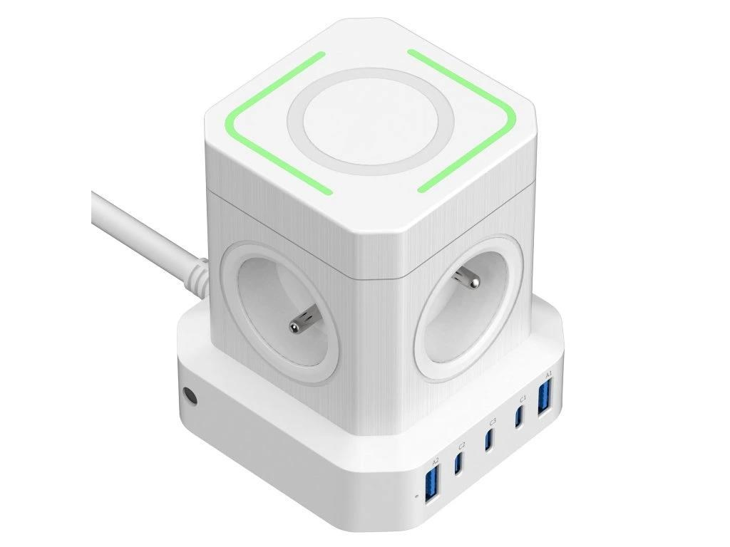 Viking ACT45W kombinuje pět výkonných USB portů (3× USB-C a 2x USB-A), čtyři AC zásuveky a 2m prodlužovací kabel v jednom kompaktním zařízení, které umožňuje současné napájení až 10 zařízení.
