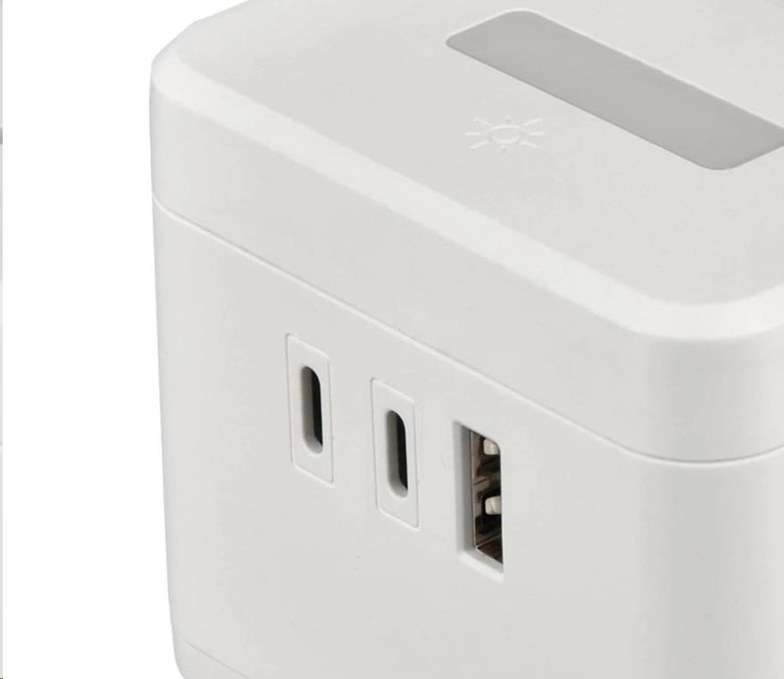 Viking síťový adaptér YC23H, 2x 230 V, 1x USB-A, 2x USB-C, dotykové světlo, funkce stojánku, bílá