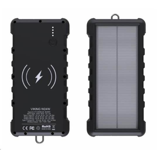 Viking solární outdoorová powerbanka W24W 24000 mAh, bezdrátové nabíjení