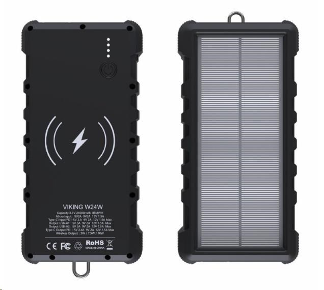 Viking solární outdoorová powerbanka W24W 24000 mAh, bezdrátové nabíjení