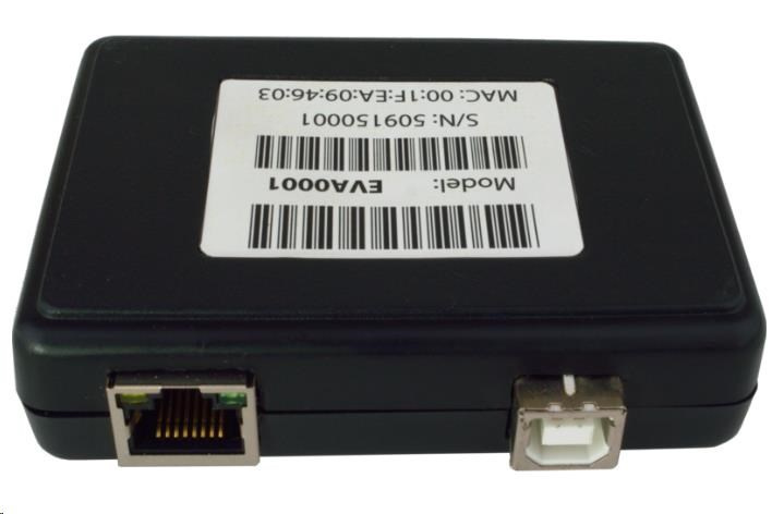 Ethernet TCP/IP adaptér pro pokladní zásuvky slouží k otvírání zásuvek přes síť. Díky jednoduchosti implementace stačí poslat na IP adresu a port adaptéru pouhý jeden libovolný bajt a tím dojde k otevření zásuvky. Je tedy možno otvírat zásuvky z mnoha různých zařízení a to i z těch, které nemají žádné fyzické rozhraní (tablety, telefony) - například jen pomocí přístupu přes wifi síť. Jednu zásuvku je navíc možné otvírat z více zařízení zároveň.