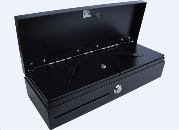 Virtuos pokladní zásuvka FT-460C Flip top, s víkem, 9-24V, černá - s kabelem