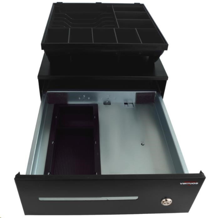 Virtuos pokladní zásuvka SK-325C - s kabelem, pořadač 6/8, 9-24V, černá
