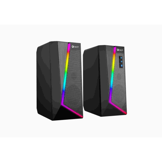 Stolní PC reproduktory C-tech SPK-17 s elegantním designem a decentním RGB osvětlením se stanou stylovým doplňkem každého pracovního stolu. Díky 40mm měničům s širokým frekvenčním rozsahem dopřejí vašim uším velmi kvalitní reprodukci. RGB osvětlení disponuje 6 různými světelnými režimy, které vám zaručí originální vizuální zážitky. Volba režimu je velmi jednoduchá a to dotykem na horní ploše řídícího reproduktoru. Reproduktory připojíte k počítači pomocí 3,5mm audio kabelu a nemusíte si dělat starosti ani s přídavným napájením, protože reproduktory C-tech SPK-17 jsou napájené přímo z USB vašeho počítače a tak se Vám automaticky spustí či vypnou společně s počítačem či notebookem. K ovládání hlasitosti poslouží tlačítka nacházející se na jednom z reproduktorů. Společně s ovládáním hlasitosti, je možno stiskem dalšího tlačítka vypnout RGB podsvětlení reproduktoru.