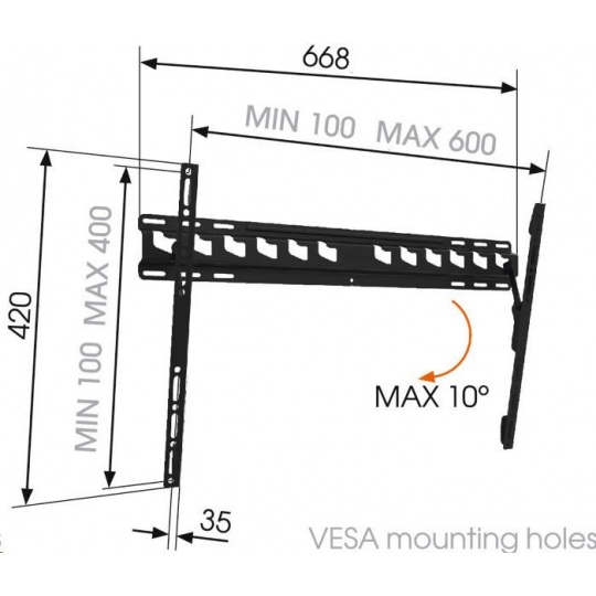 Další vlastnosti:- vzdálenost TV od stěny 35 mm