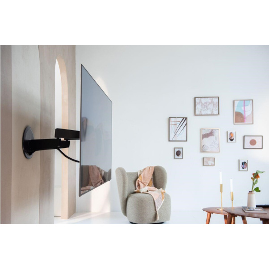 MotionMount má velký rozsah pohybu vpřed díky 4 dlouhým a silným opěrným ramenům. Motorizovaný pohyb umožňuje posunout televizor dopředu až o 72 cm. Díky tomu je nástěnný držák televizoru vhodný i pro montáž do skříně nebo výklenku.