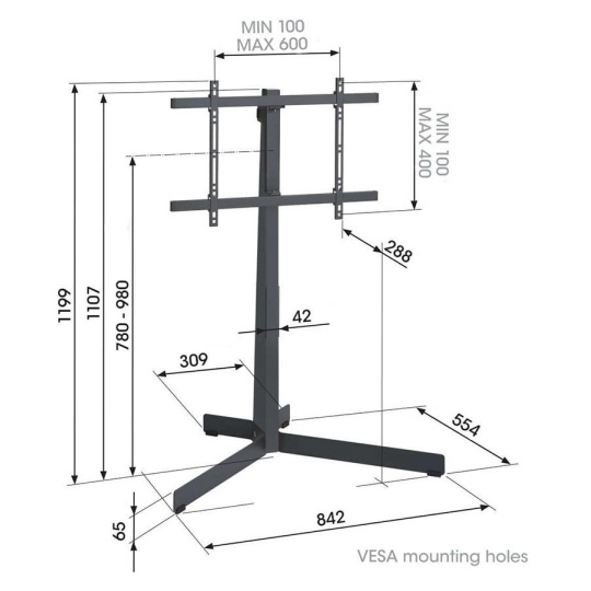 TV 40-77'', natáčení ±45°, VESA 600x400 mm, výška středu VESA 780-980 mm, 50 kg, černá ocel.... více