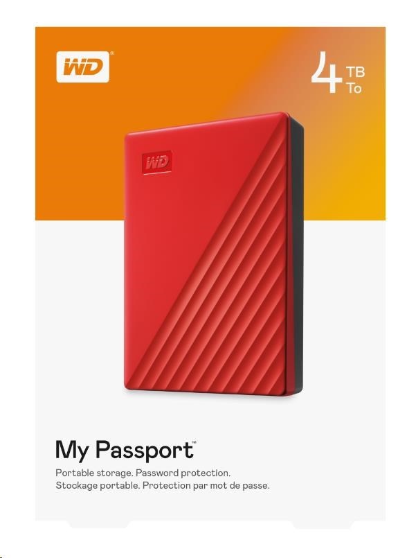 WD My Passport Portable 4TB, Externí HDD, USB 3.0, červená