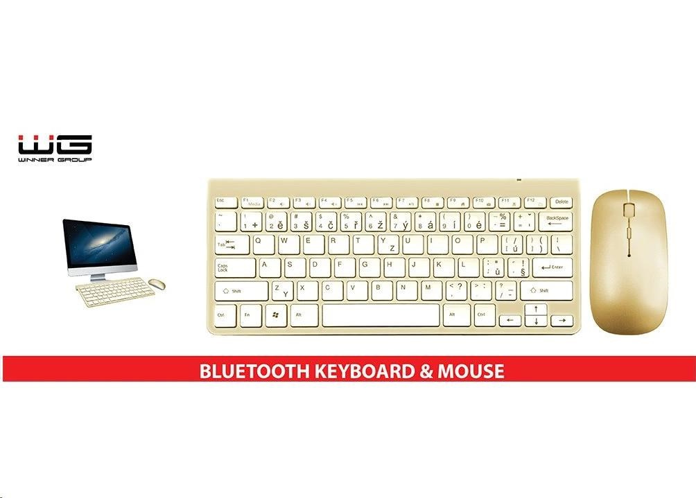 Bezdrátová sada skládající se z klávesnice a myši ve zlaté barvě vám rozhodně usnadní práci. Můžete zapomenout na zamotané kabely. Jak klávesnice, tak myš fungují prostřednictvím Bluetooth, díky čemuž se nemusíte starat o pohodlí.