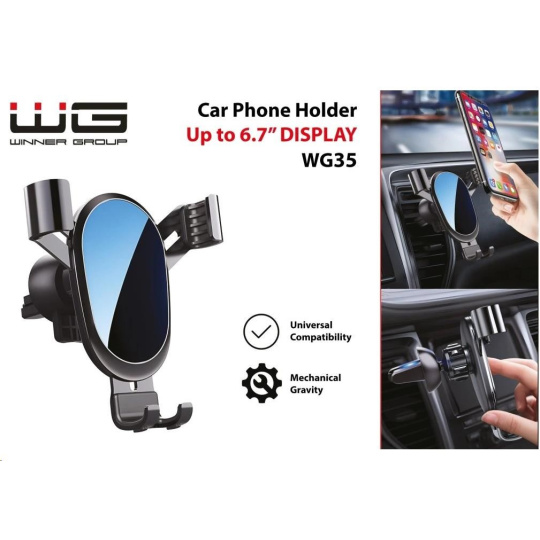 Využívejte svůj telefon jako navigaci nebo telefonujte s handsfree, zatímco máte displej svého zařízení přímo před očima. Držák na telefon WG35 připevníte snadno pomocí svorek na ventilační mřížku vašeho automobilu (pozor, nedá se upevnit do kruhových větracích otvorů). Trojúhelníková konstrukce zaručuje, že telefon drží pevně i na nerovných cestách. Materiál je odolný a zároveň se ve vašem autě bude skvěle vyjímat. Do držáku upevníte jakýkoliv telefon s úhlopříčkou 4 až 6,7 palců.