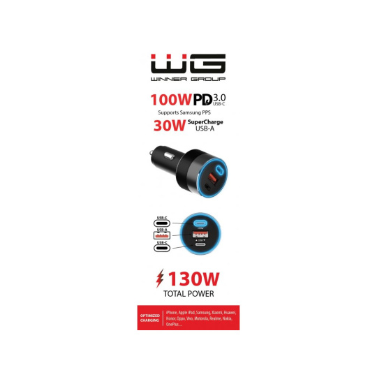 WG - Nabíječka do auta 3x USB 130W, 1x USB-C PD 100W + 1x USB-C 30W + 1x USB-A 18W, černá