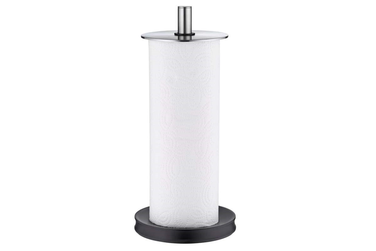 - Stabilní základna: Široká a zatížená spodní část zajišťuje, že držák pevně stojí na pracovní desce i při odtrhávání utěrek jednou rukou.