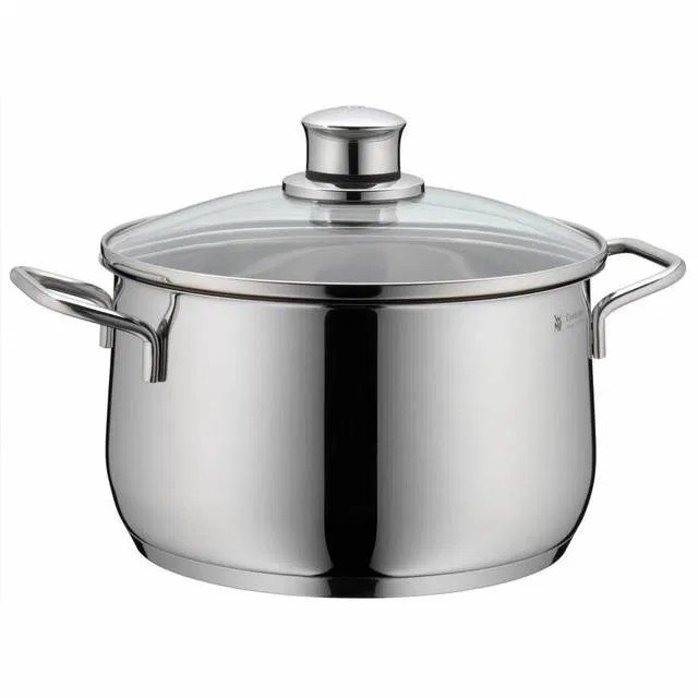 Hrnce řady Diadem Plus s vypouklým tvarem a průhlednými skleněnými poklicemi jsou ideální pro energeticky úsporné vaření a stylové servírování. Nádobí vyrobené z ušlechtilé nerezové oceli Cromargan® vyniká mimořádnou odolností proti poškrábání, je chuťově neutrální a velmi snadno se udržuje. Díky univerzálnímu dnu TransTherm® je sada vhodná pro všechny typy varných desek včetně indukce, přičemž zajišťuje rovnoměrnou distribuci tepla. Elegantní design s oblými tvary doplňují ergonomické rukojeti a široký odlévací okraj, který zaručuje přesné vylévání obsahu bez nechtěného kapání.