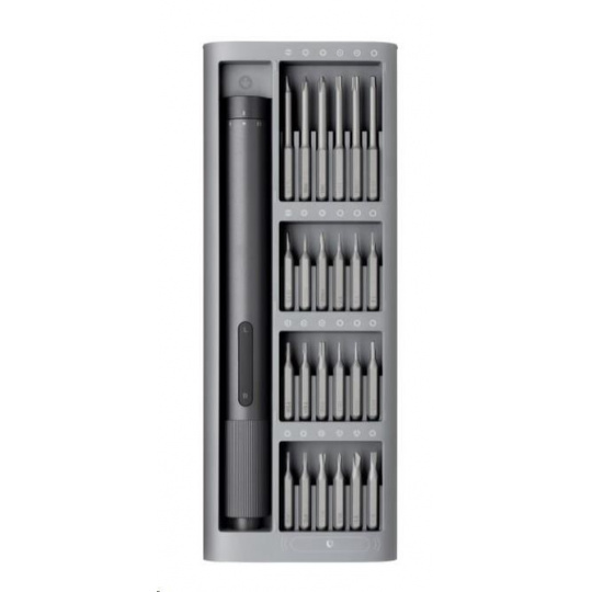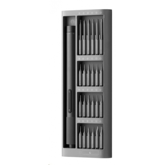 - Obsah balení: 1x šroubovák, 1x pouzdro, 24x šroubovací bit, 1x nabíjecí kabel typu C, 1x manuál