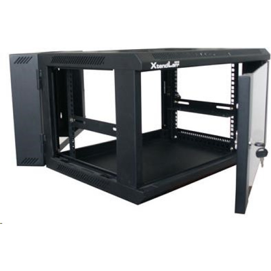 XtendLan 19" dvoudílný nástěnný rozvaděč 6U 600x550, nosnost 60 kg, skleněné dveře, svařovaný,černý