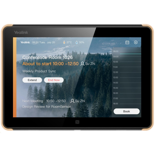 Yealink RoomPanel je profesionální multifunkční zařízení pro plánování místností s 8palcovou dotykovou obrazovkou, operačním systémem Android 9.0, plně RGB LED, duálním mikrofonem a sadou reproduktorů. Kompaktní panel typu "vše v jednom" nejen zobrazuje stav místnosti v reálném čase, ale umožňuje také ad hoc rezervace schůzek nebo rezervace dalších zasedacích místností, což zvyšuje efektivitu správy pracovních prostor v podniku. Také díky podpoře PoE a dodávaným držákům s více možnostmi jej lze snadno instalovat na různé povrchy (betonová stěna/sklo/dřevo atd.).