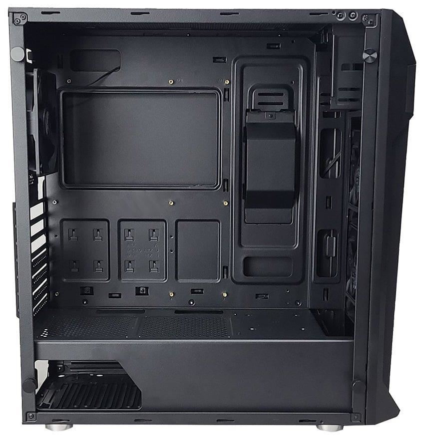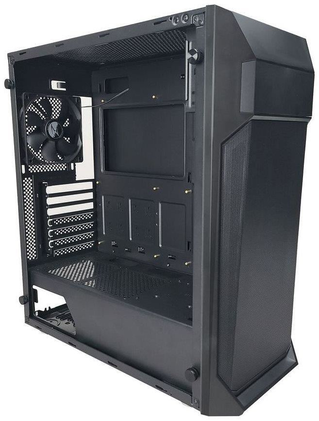 Kvalitní počítačová skříň formátu Middle Tower nabízí tři 2,5" pozice pro SSD disky a dvě 3,5" pozice pro pevné disky. Předinstalovány jsou tři 120 mm ventilátory. Na horním panelu se nachází dva porty USB 3.0, jeden port USB 2.0, sluchátkový výstup a audio vstup pro mikrofon. Ve skříni je dostatek prostoru pro chladič CPU do výšky až 163 mm a grafickou kartu o délce až 385 mm. Důmyslné řešení umožňuje pohodlné umístění až 280 mm dlouhého výměníku vodního chlazení na horní straně. Skříň je vybavena průhlednou bočnicí. Potěší také přítomnost prachových filtrů. Skříň je dodávána bez zdroje.