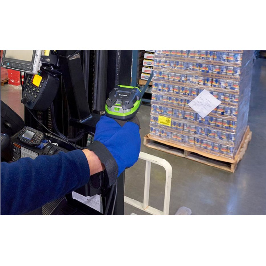 handheld scanner, industry, 1D, linear imager, extended range, multi-interface (RS232, KBW, USB), protection class: IP67, incl.: cable (USB), colour: black, zelená.