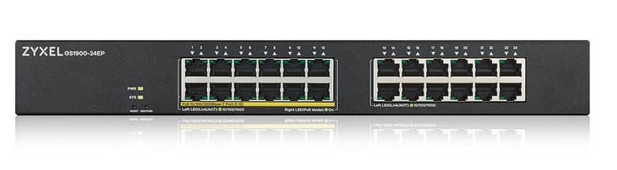 Zyxel GS1900-24EP 24-port Gigabit Smart Managed PoE Switch, 24x gigabit RJ45 (z toho 12x PoE), PoE budget 130W